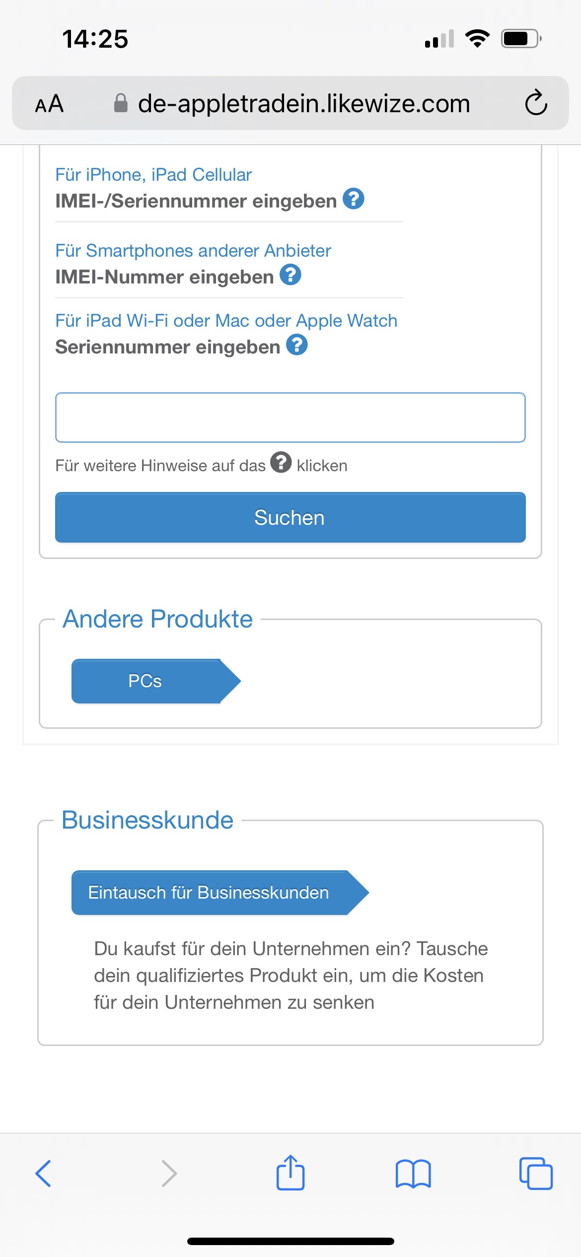 Eingabe von Seriennummer bei Trade-In funktioniert nicht