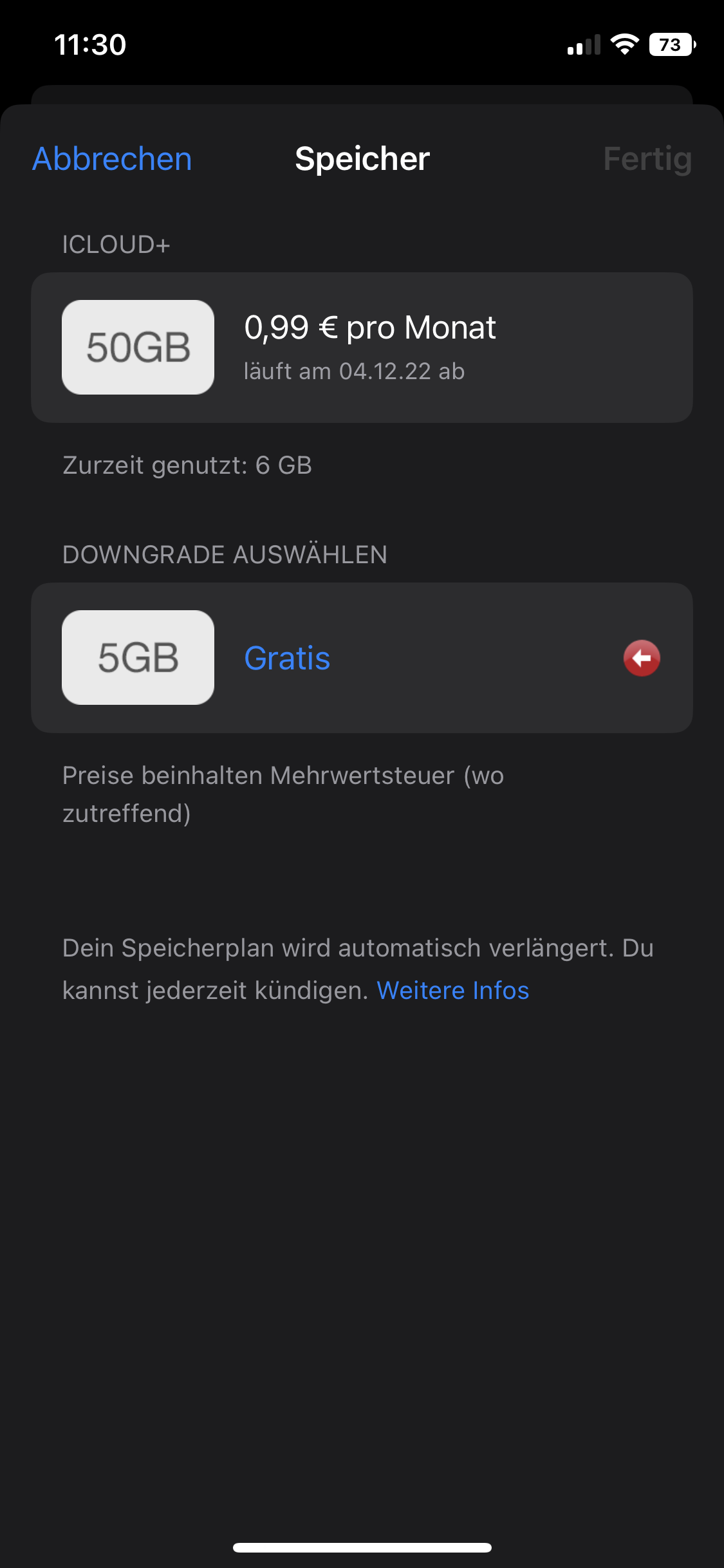 Abonnement des 50 GB iCloud-Speicher kündigen