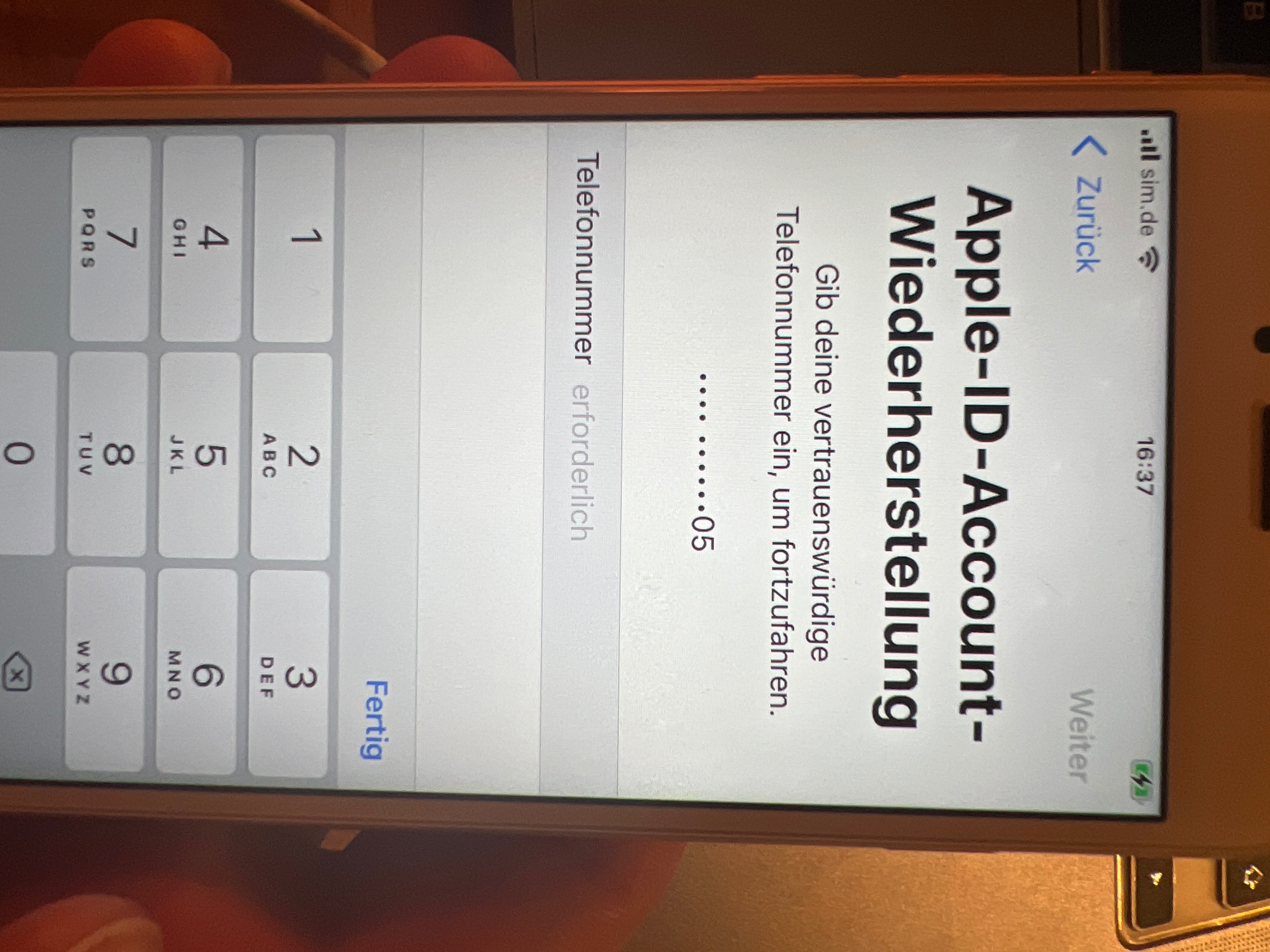 Vertrauenswürdige Telefonnummer zum Wiederherstellen der Apple-ID nicht mehr vorhanden