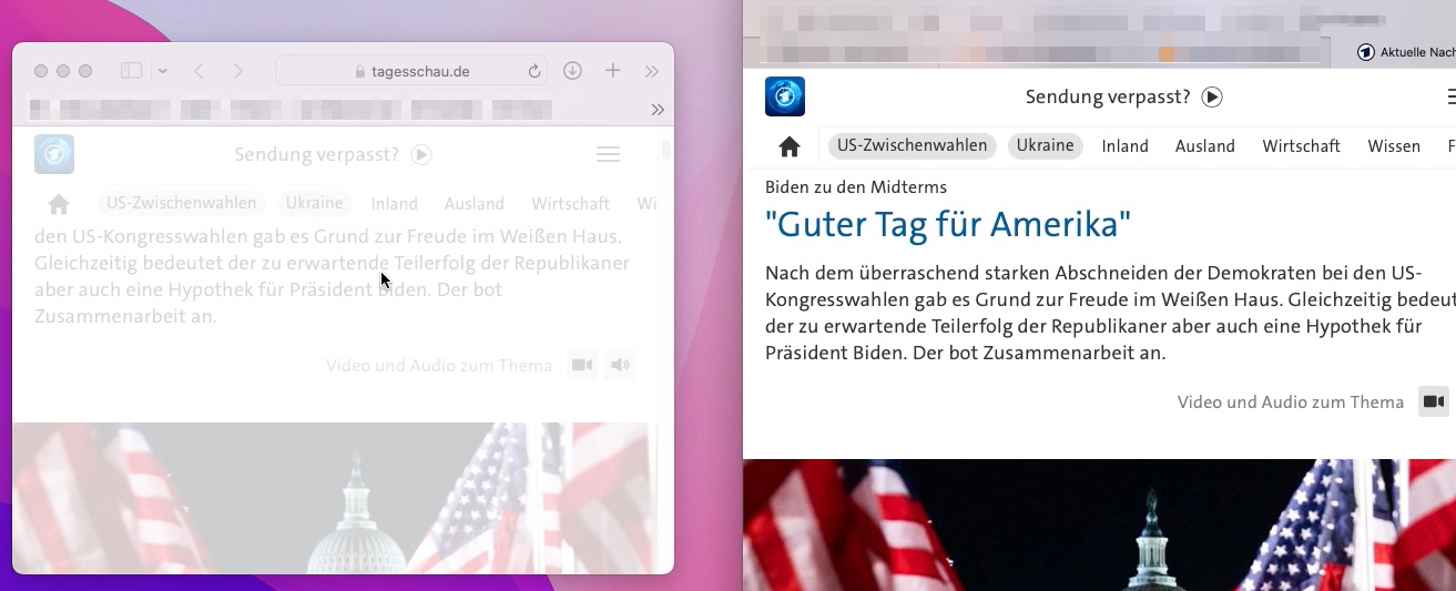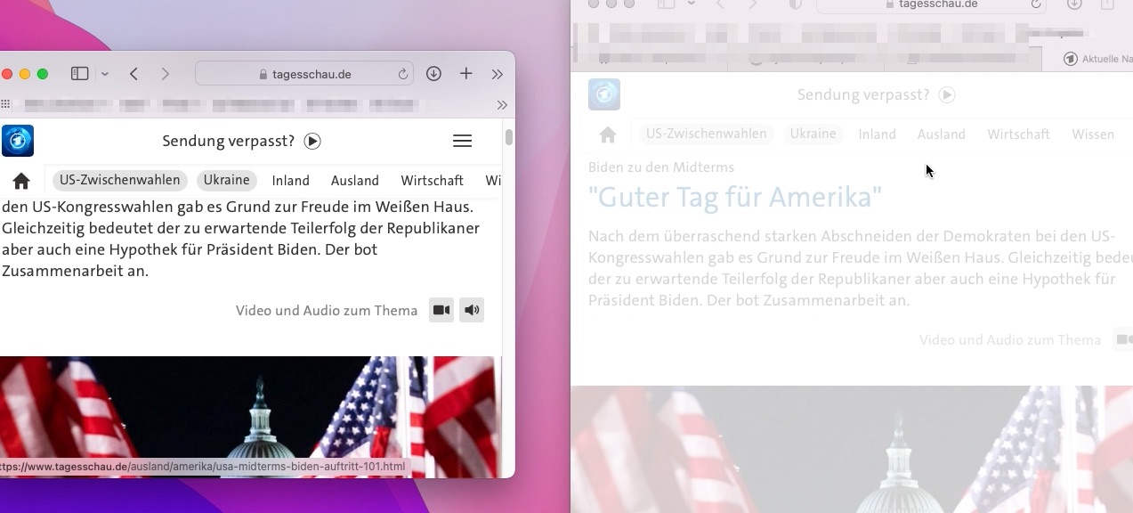 seit kurzem reagiert Safari nicht mehr wie gewohnt, wenn ich ein Browser-Tab in ein neues Safari-Fenster ziehe. Bisher war es so: Ich konnte ein Safari-Tab irgendwo auf den Schreibtisch verschieben und es öffnete sich ein neues Safari-Browswerfenster. Jetzt ist es so, dass das alte Tab bestehen bleibt und ausgegraut wird. Das Problem ist, wenn ich mit beiden Browserfenster arbeiten möchte, ist eines davon immer ausgegraut... Siehe Screenshots.