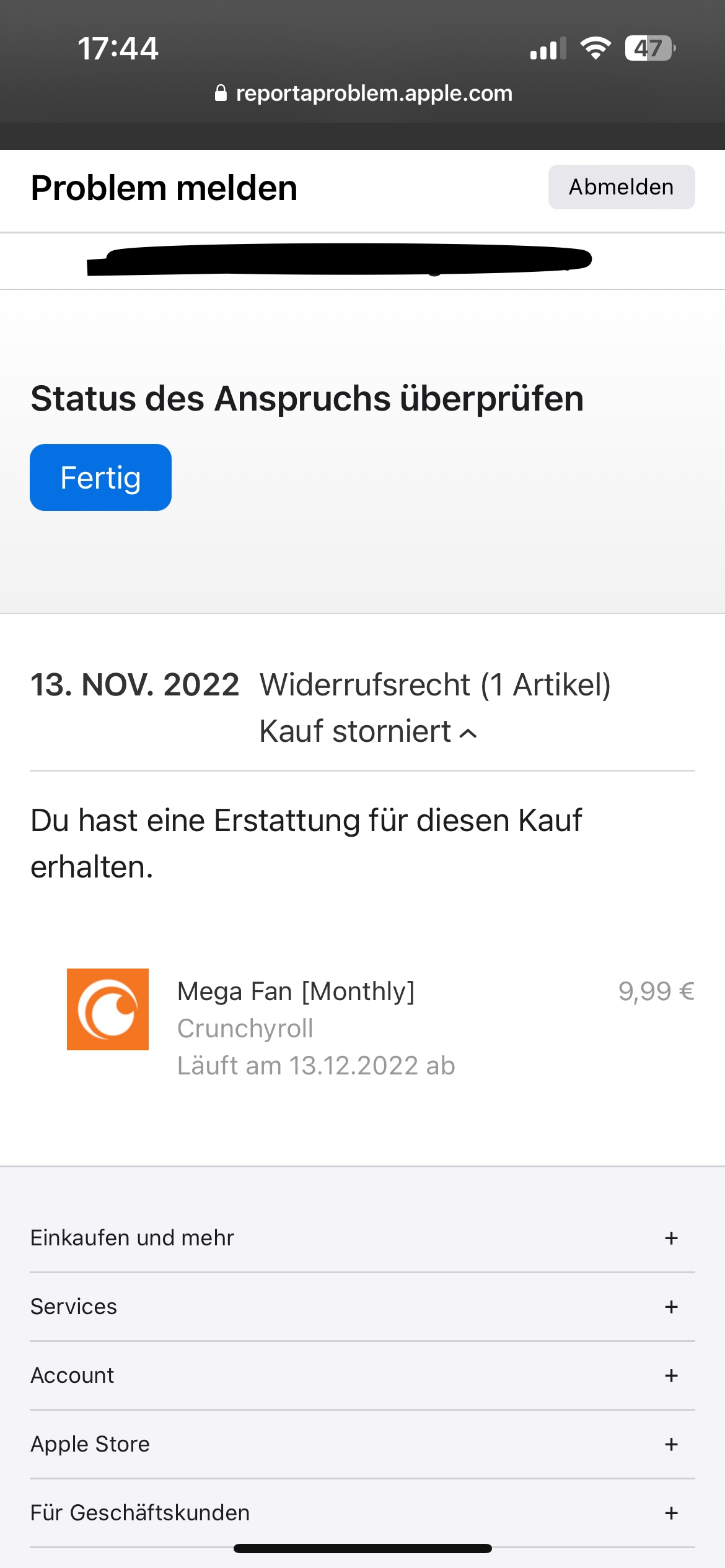auf die Zahlungsmethode, die mit der du es auch bezahlt hast.