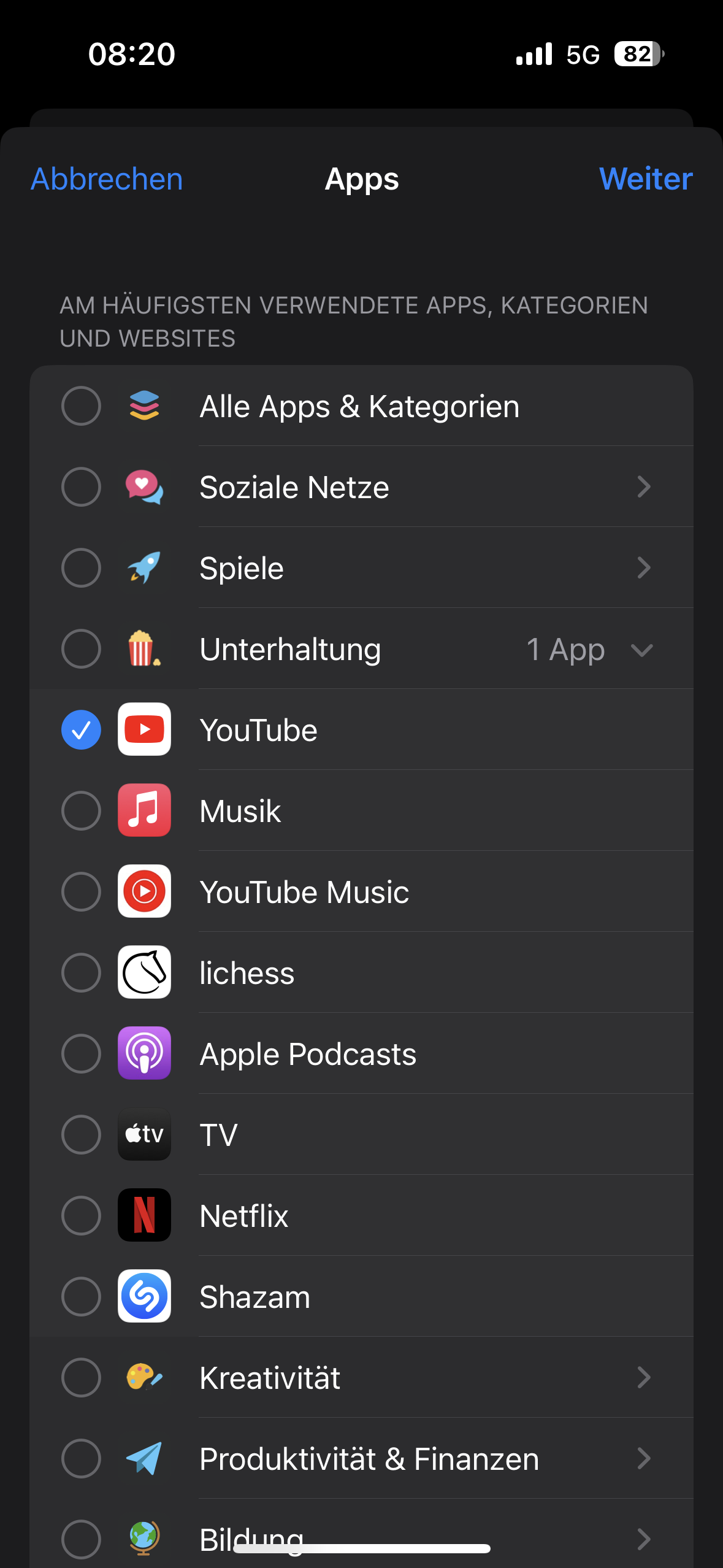Bildschirmzeit für YouTube beschränken funktioniert nicht