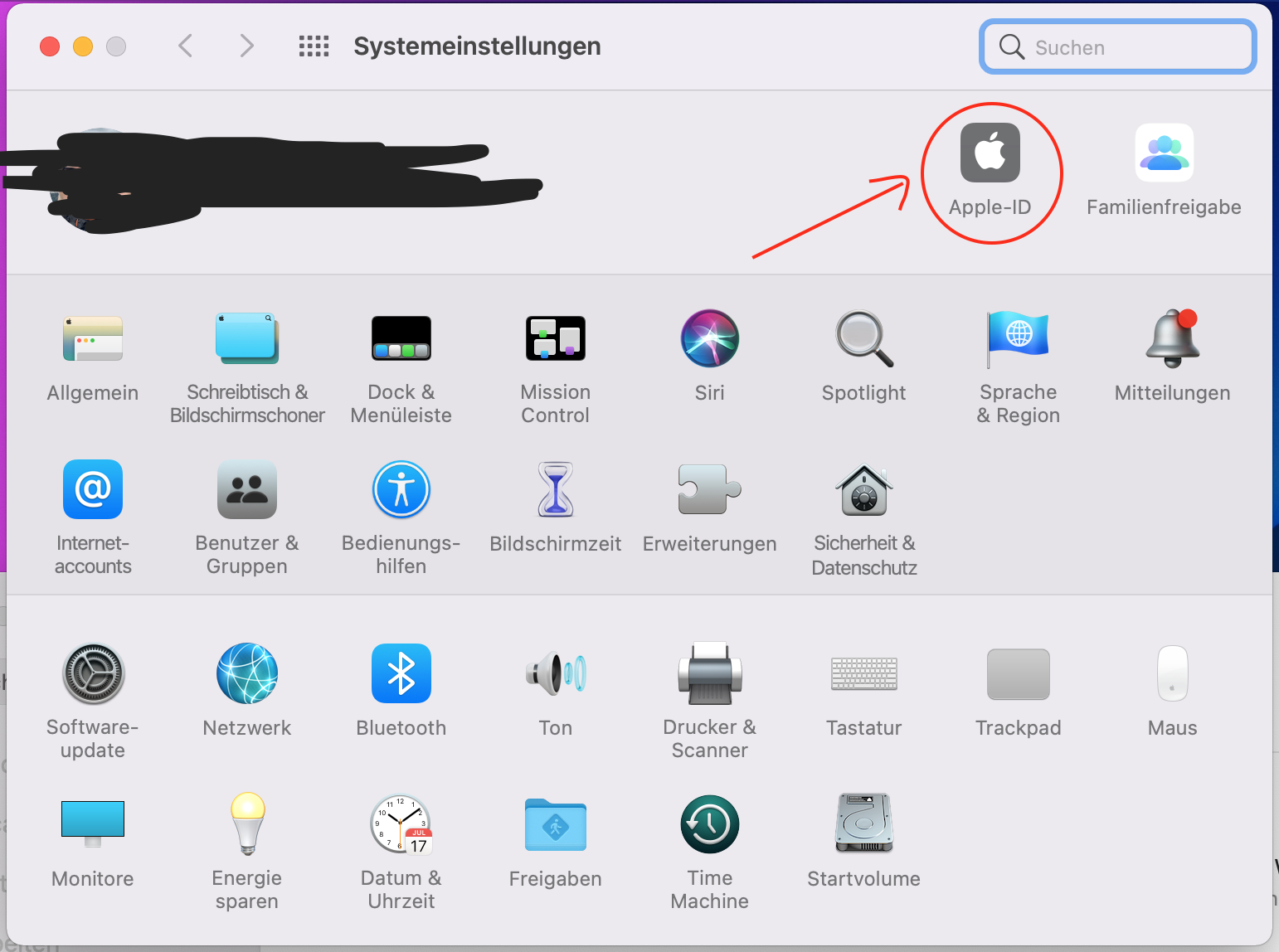Ich habe die passende Option in den Systemeinstellungen hier mal hervorgehoben - irgendwo muss auch bei dir etwas mit Apple-ID stehen. Im Zweifelsfall kannst du natürlich auch im Suchfeld der Systemeinstellungen nachsehen.