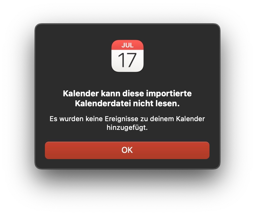 .ics Import unter macOS Ventura funktioniert nicht