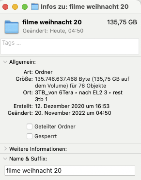 In meiner Vorstellung darf es einfach nicht sein, dass der Finder einen Ordner mit 0B ausweist und in Wirklichkeit sind da 50GB drinnen, verstehst Du: 50GB.