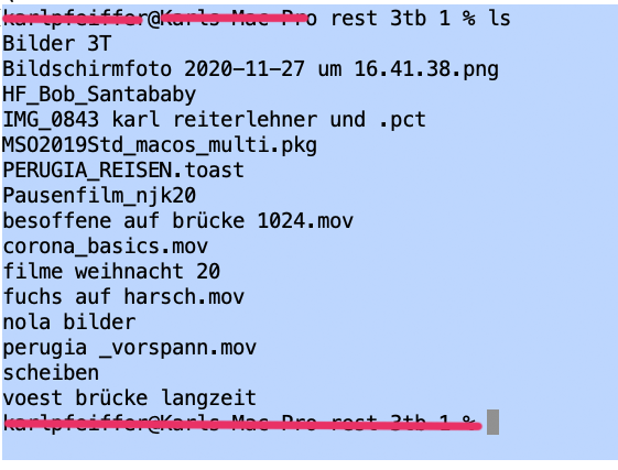 Es geht auch nicht darum, dass mir im Terminal oder im Finder (kleinere) Dateien abgehen, dass ich sie vermisse, und eine Frage daran knüpfe, wie ich allgemein Dateien sichtbar machen kann.