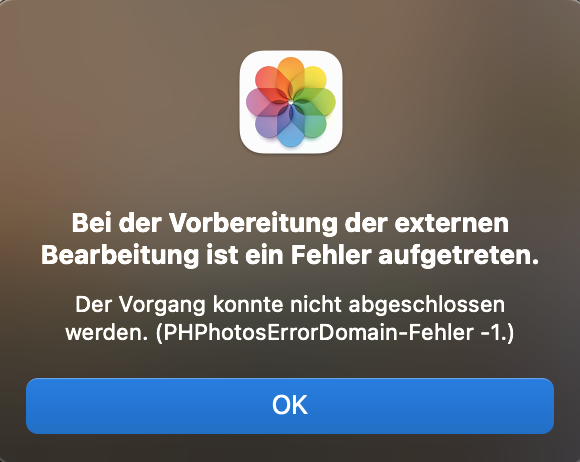 Auch das Bearbeiten über "Öffnen in .." läuft auf einen Fehler.
