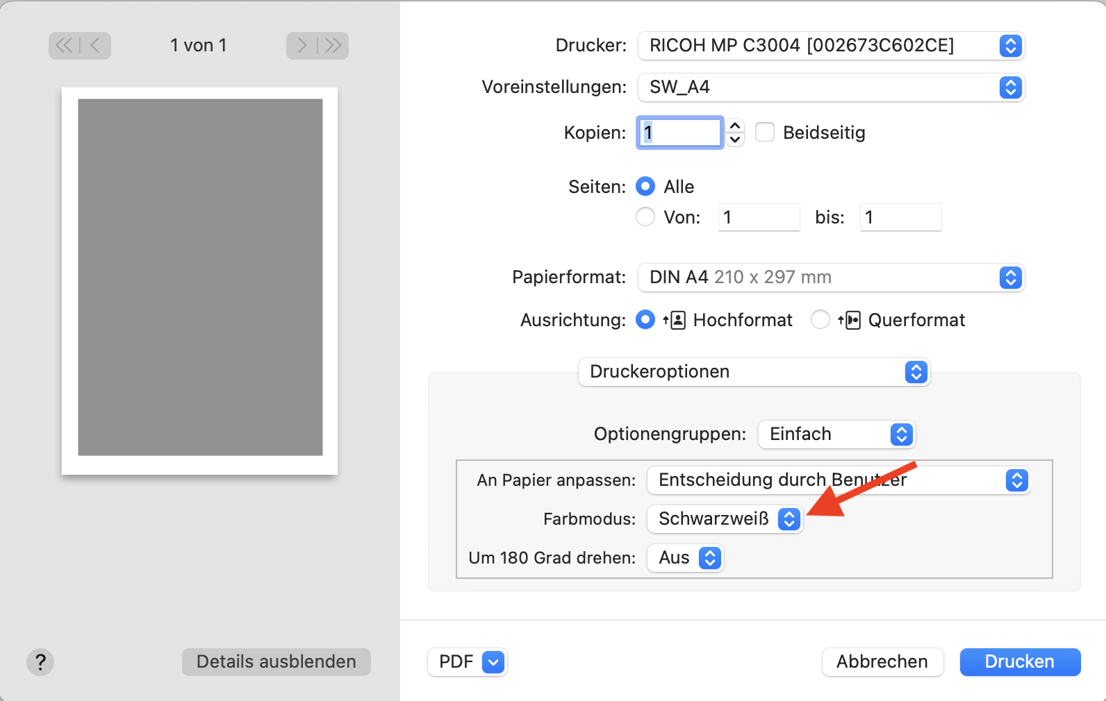 HP Drucker druckt mit neuem iMac nur in Schwarz/Weiß