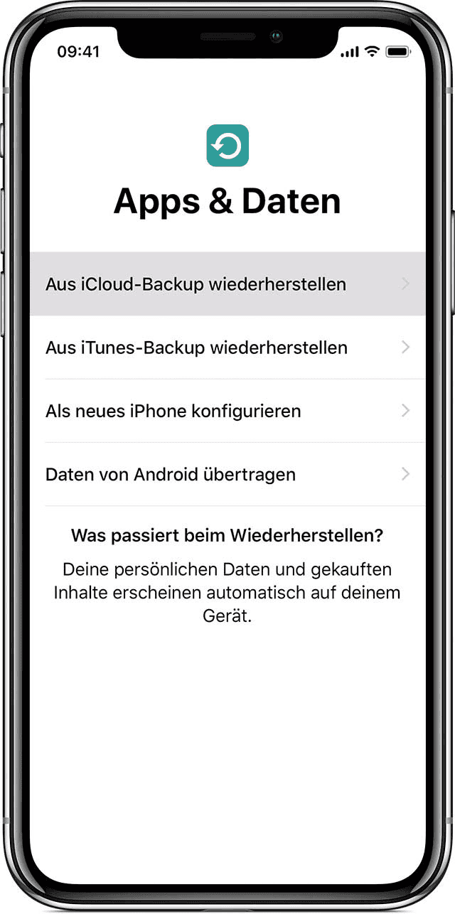 Den Eintrag "Apps und Daten" auf dem iPhone 13 finden