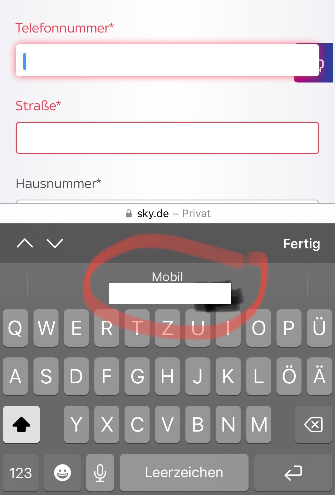 Die Handynummer ist nicht meine und kommt jedesmal bei Automatisch ausfüllen.