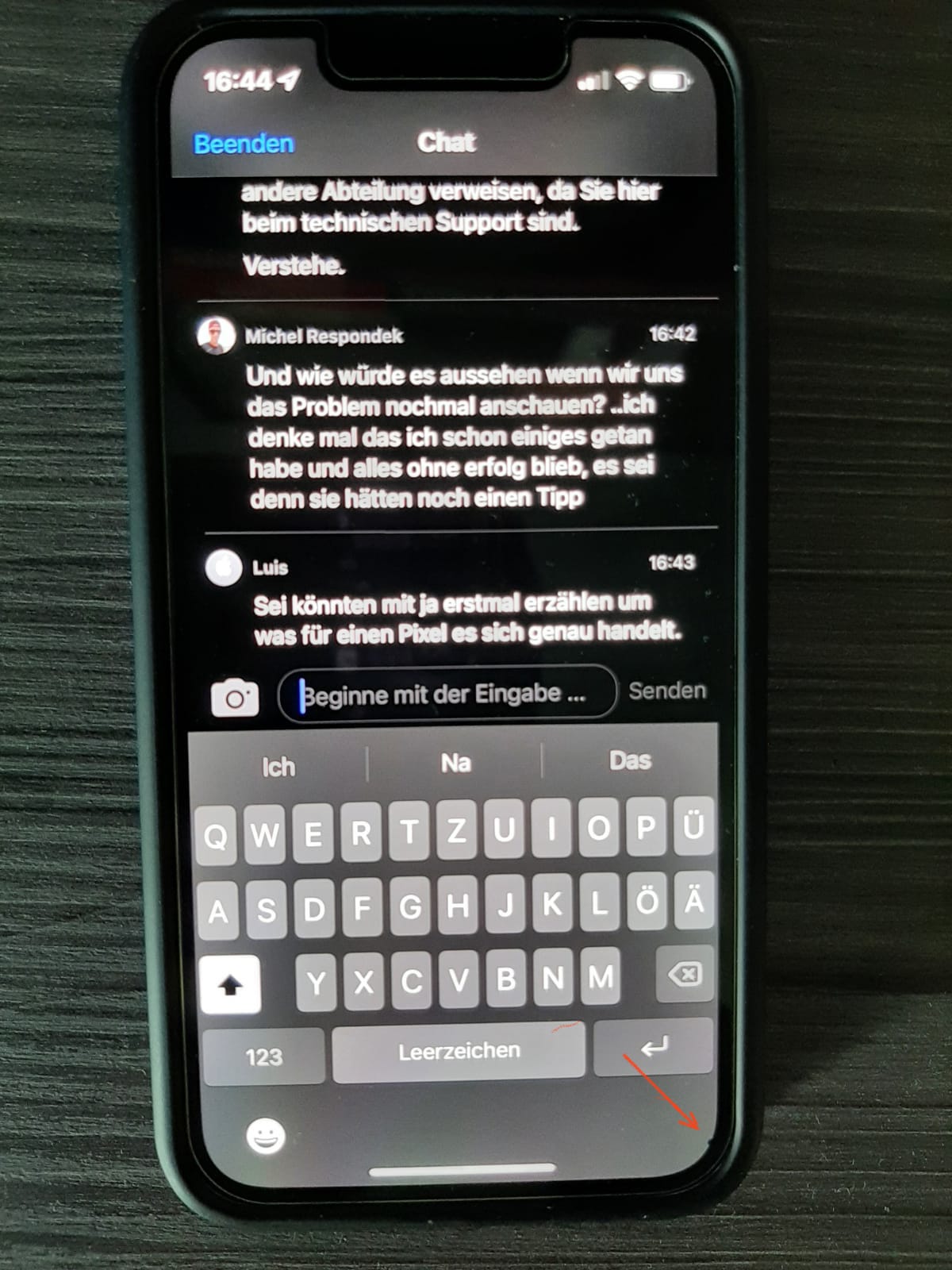 das obere Foto zeigt als ich am 29.06.22 bereits mit einem Apple Support geschrieben habe und ihm das Problem schilderte das mein IPhone Probleme beim telefonieren hat. Er konnte mir nicht helfen und darauf hin fragte ich ob es mit dem schwarzen Fleck auf dem dem Display zutun haben könnte, wusste er nicht und meinte ich solle beim Händler den Wechsel des Displays reparieren lassen, was nur schwierig ist wenn man geschäftlich steht’s durch Deutschland reist und auf sein Telefon angewiesen ist.