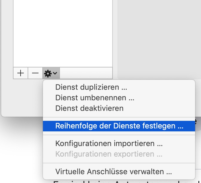 Obwohl ich in den Netzwerkeinstellungen mittels Verbindungsreihenfolge die Priorität auf die Verbindung über 10GbE via Thunderbolt 2 zu 3 Adapter und das Thunderbolt Pro Dock von OWC festlegte, wird trotzdem WLAN vorgezogen. Ich muss das System mittels Deaktivierung des WLAN am iMac zur Nutzung der viel schnelleren 10GbE Verbindung zwingen.