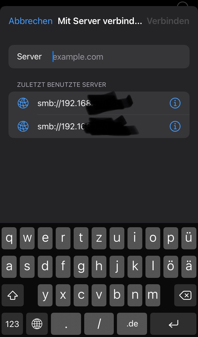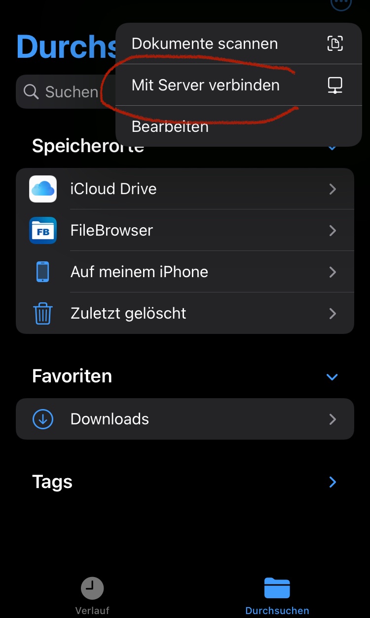 Dann in der Dateien-App auf "Mit Server verbinden" tippen, die Verbindung auswählen und here we go....