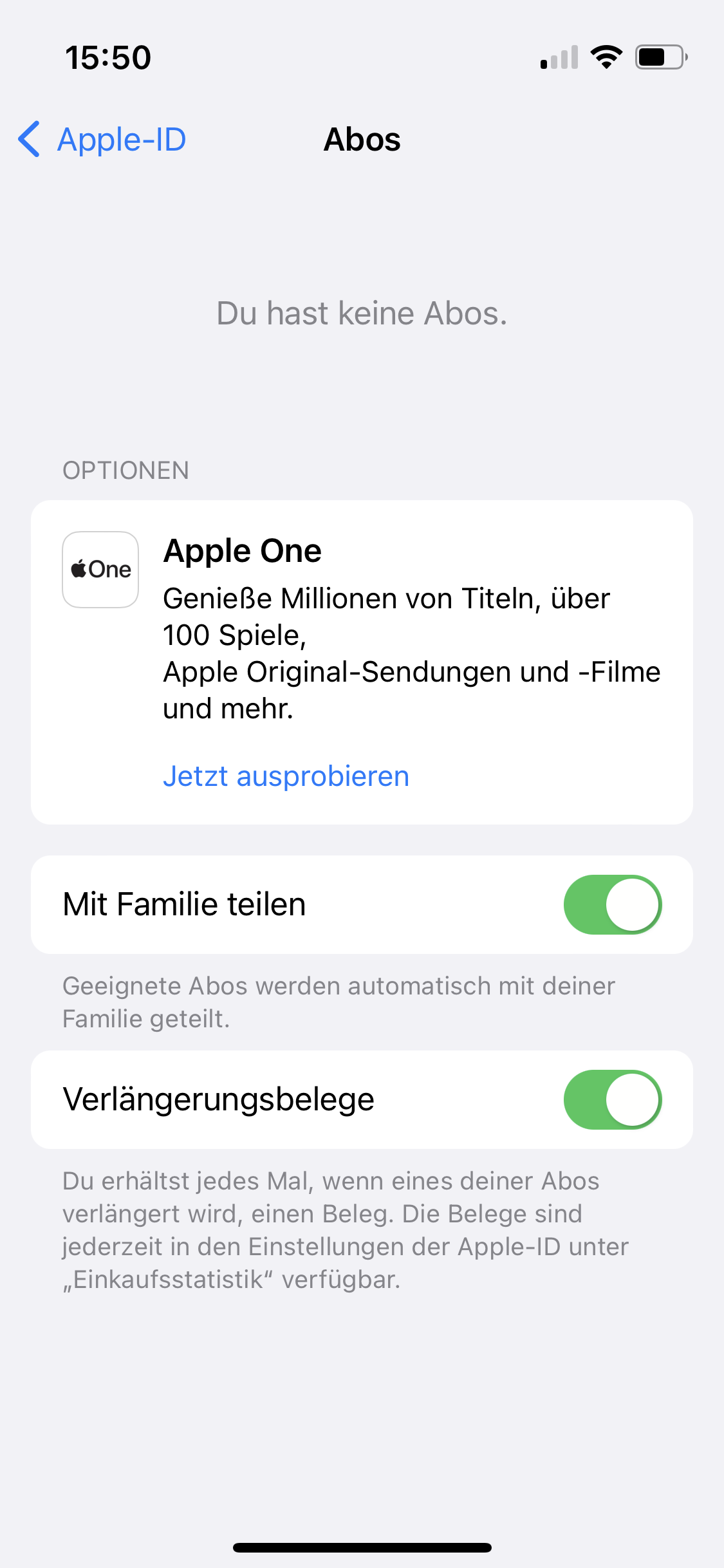 dann schau mal bei deinem Mann unter Einstellungen -> Abonnements