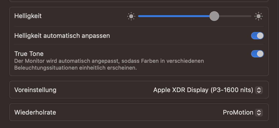 Ich habe meinen iMac M1 kürzlich über USB komplett neu aufgesetzt und nun festgestellt das trotz aktivierter "Helligkeit automatisch anpassen" das Display immer auf der selben Stufe bleibt. Am Tag wenn ich die Hand auf den Sensor lege passiert nichts. Ich habe den Controller zurückgesetzt, neu gestartet, usw. aber nichts hilft. Ist das ein bekannter Bug unter Ventura oder ist der Sensor defekt?