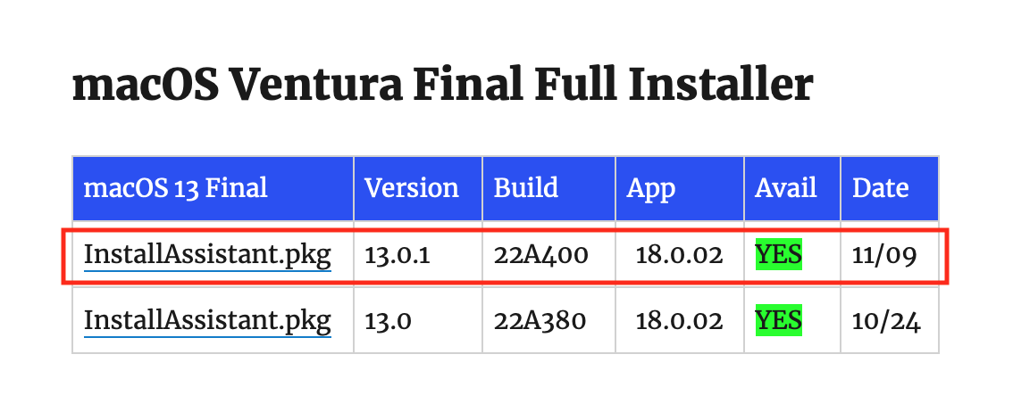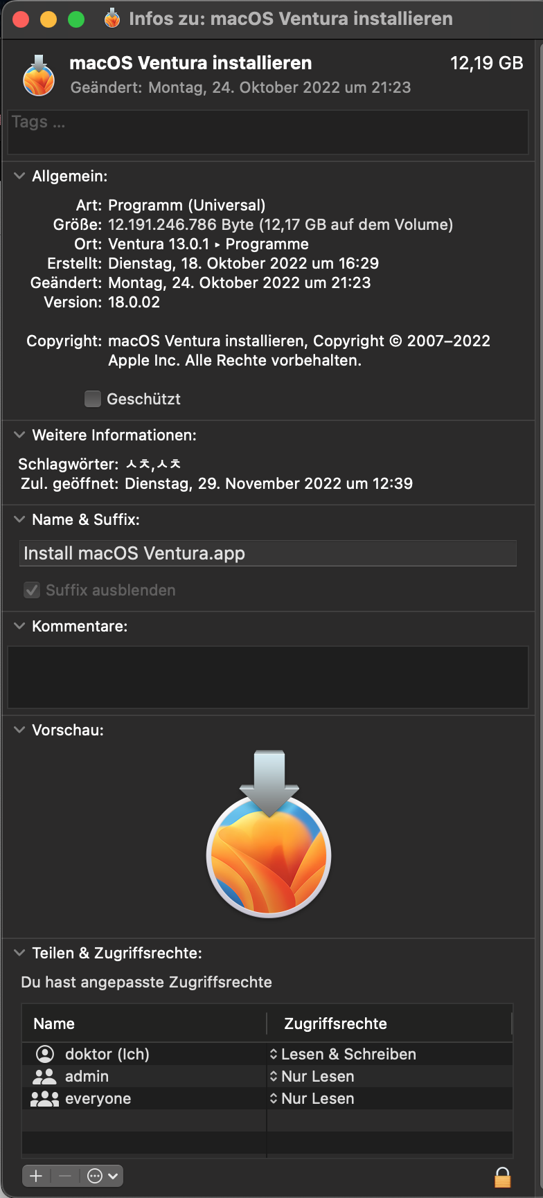 Du wirst das pkg schon ausführen müssen (portiert Installer in den Programmordner), denn der bootfähige USB Stick mit Ventura läßt sich nur über diesen Weg (siehe weiter oben):