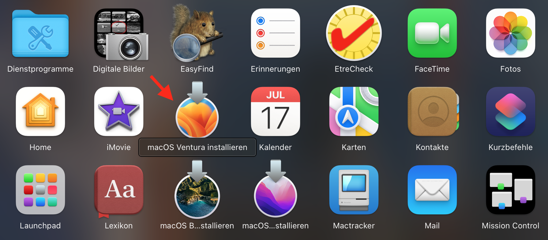 du brauchst den gewünschten MacOS/Ventura-Installer, den du in den Programmordner packst