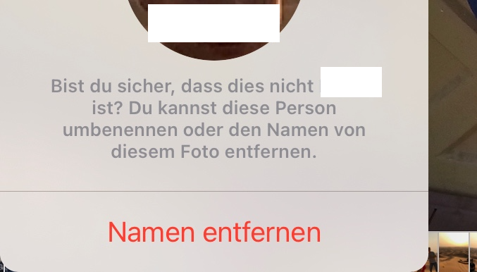 Und sobald ich bei falsch erkannte Personen auf „nicht diese Person“ klicke, sollten zwei Optionen erscheinen: Person umbenennen oder Namen entfernen. Bei mir erscheint nur Namen entfernen, siehe Anhang. Wieso kann ich die Person nicht umbenennen?