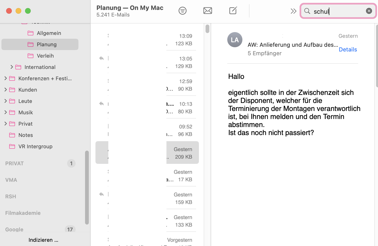 Suche in Mail auf macOS Ventura funktioniert nicht mehr