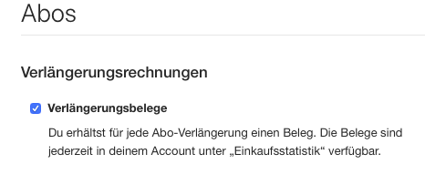 Im Bereich Abonnements kann man auch den automatischen Versand der Belege per Mail aktivieren.