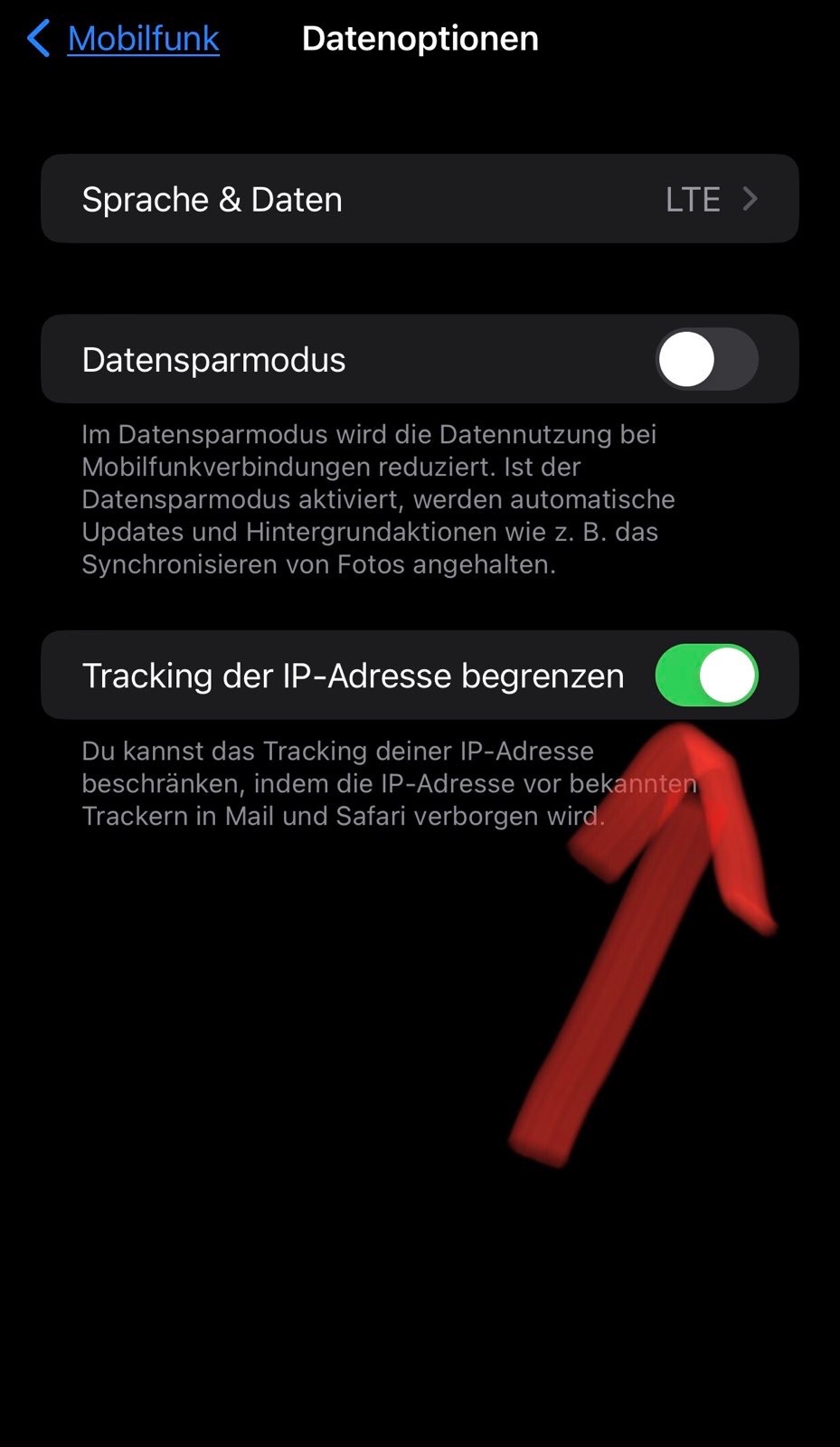 Einstellung/Mobilfunk/Datenoption/Tracking der IP-Adresse zu deaktivieren und wieder zu aktivieren.