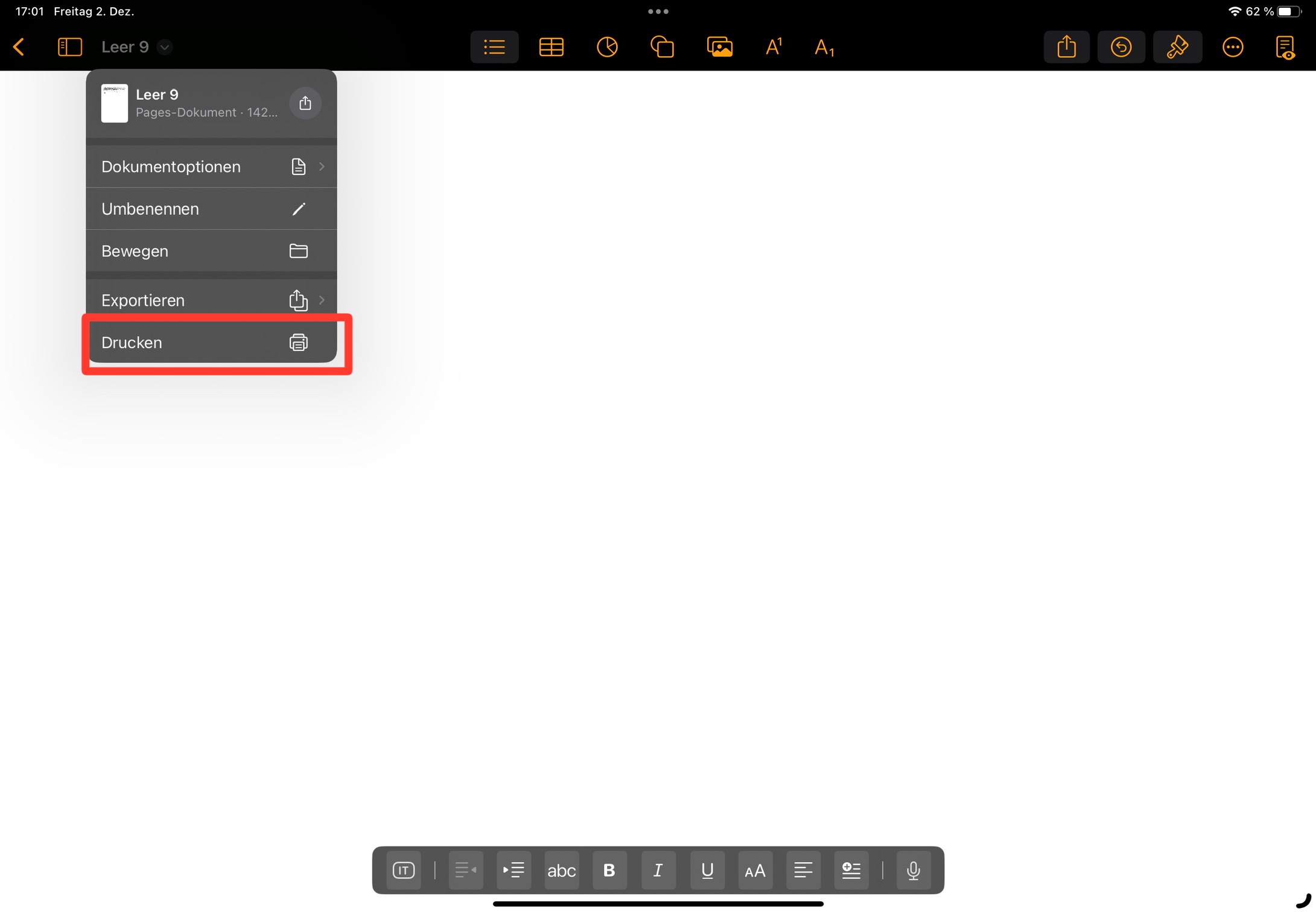 Seit iPadOS 16.1.1 Update aus Pages und Numbers drucken nicht möglich