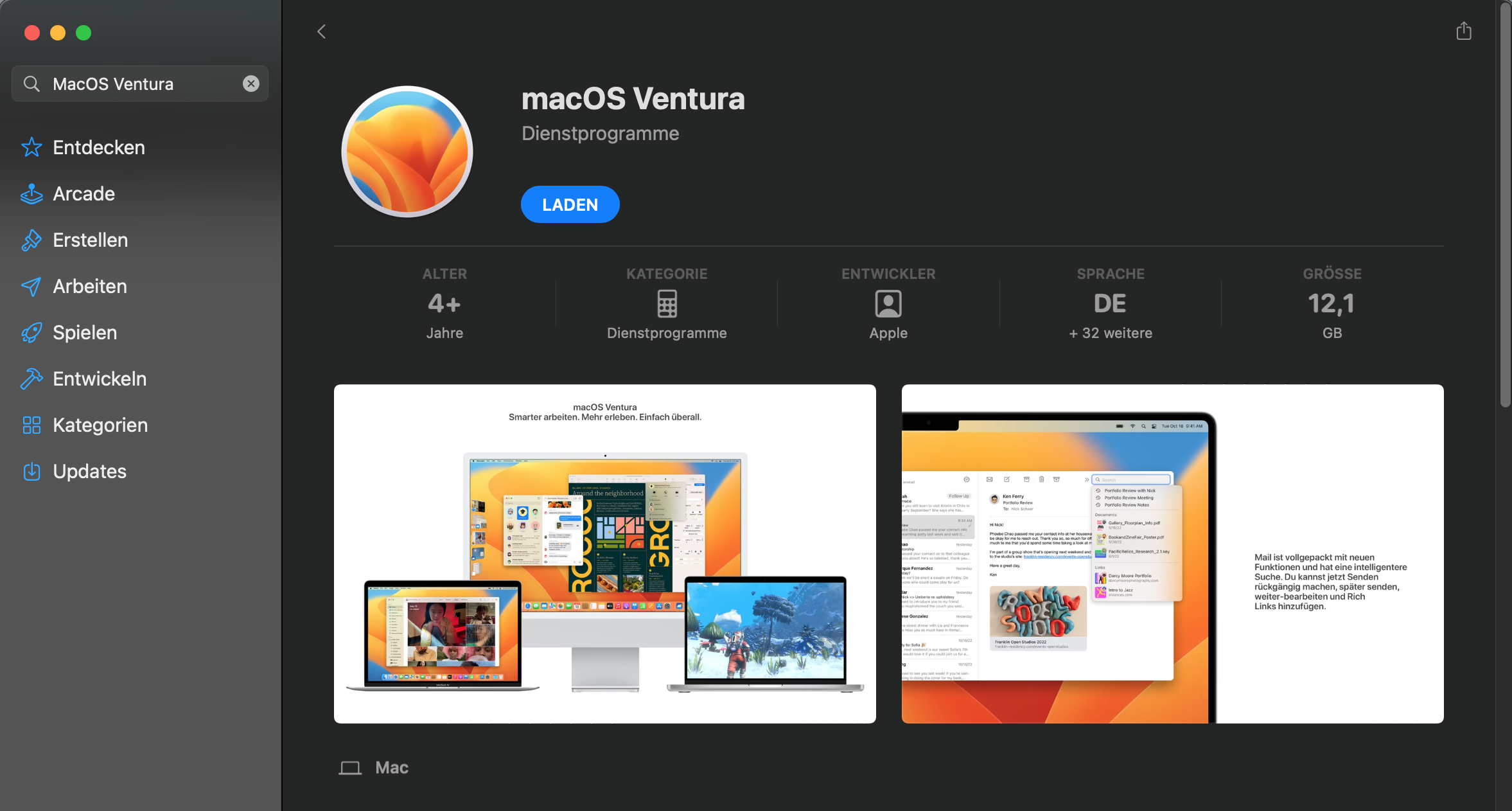 aus dem du MacOS Ventura laden und installieren kannst.