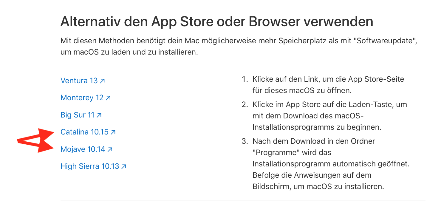 Über MacOS Catalina hinaus stehen dir nur noch gepatchte MacOS zur Verfügung (bis hin zu MacOS Ventura 13.0.1), ein MacOS also, das zwar seitens Apple als nicht mehr kompatibel mit dem Typ oder dem Modelljahr deines iMac deklariert wird, das aber von einem fachkundigen Entwicklerteam für diese "nicht-kompatiblen" Rechner lauffähig gestaltet wurde.