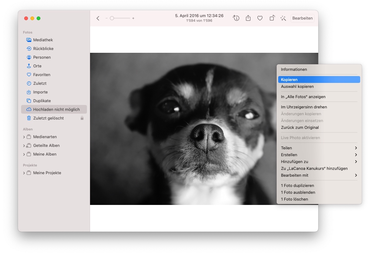 Bei einem nachfolgenden Import in eine neue Mediathek waren erstens die Namen der Fotos wie im Original und zweitens alle Metadaten vorhanden. Auch die Qualität der Fotos entspricht dem Original.