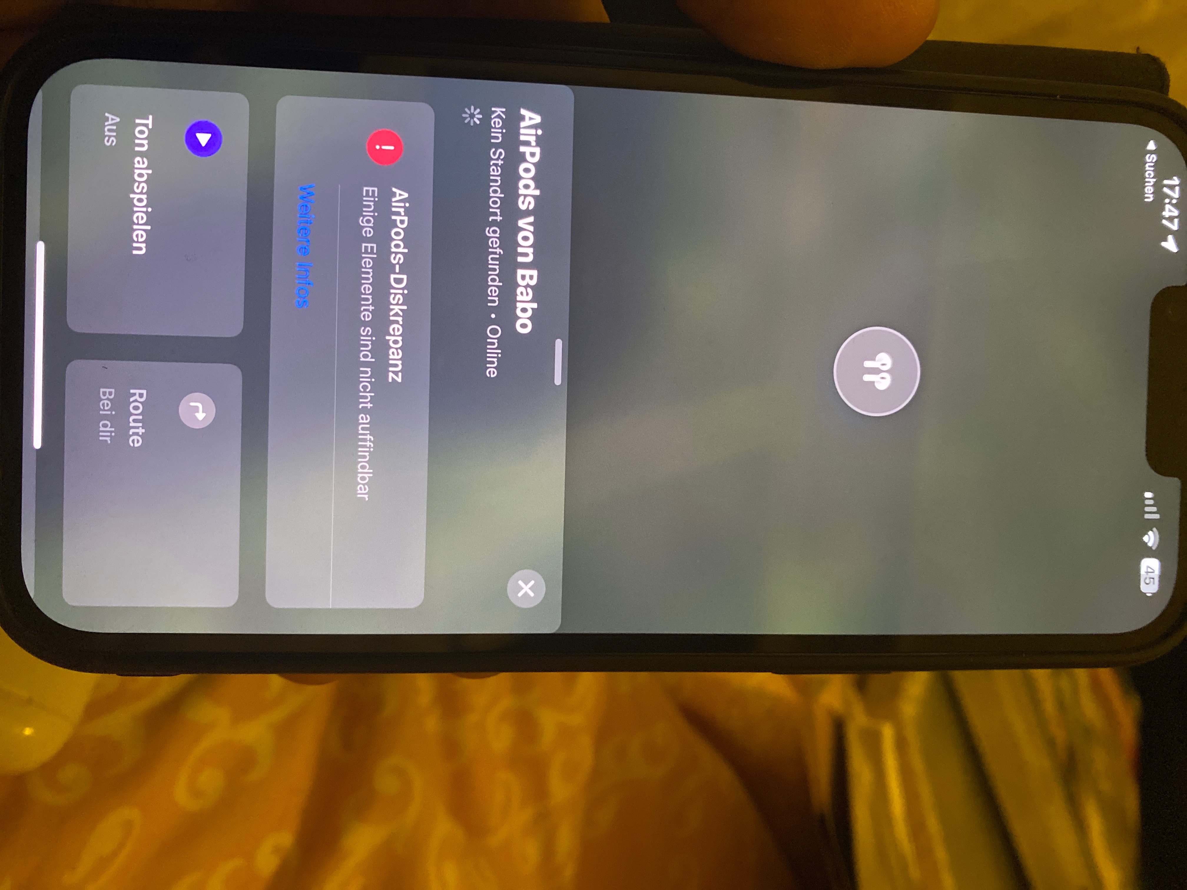 Die Meldung "AirPods-Diskrepanz" wird angezeigt