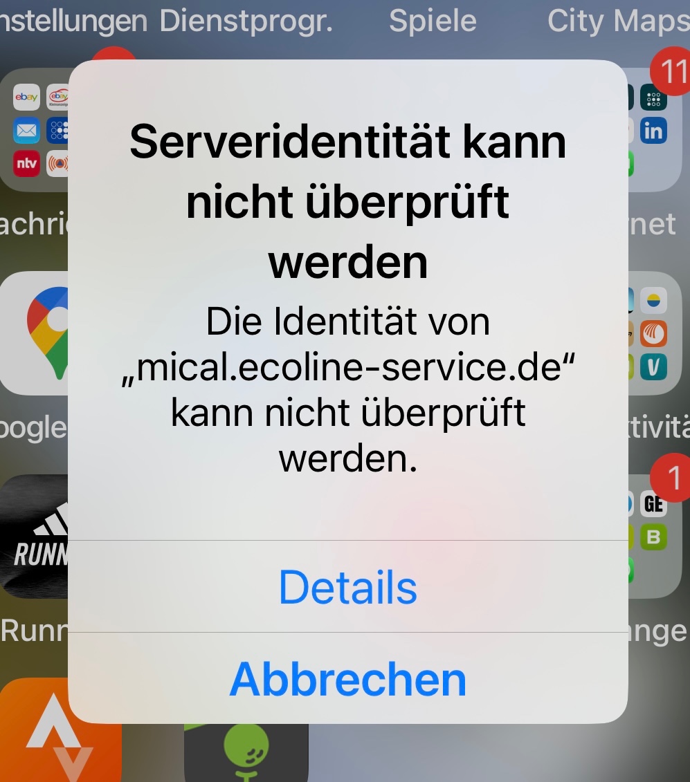 Das wird durch ein veraltetes Zertifikat auf diesem Server verursacht. Was passiert, wenn du „Details“ anklickst ? Es sollte dann die Möglichkeit geben, dieses Zertifikat trotzdem als vertrauenswürdig einzustufen.