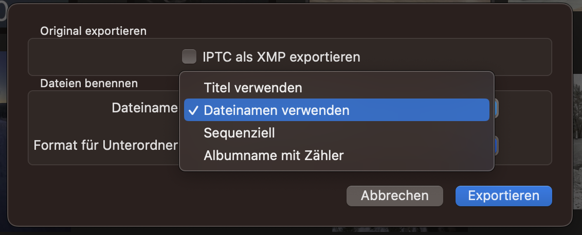 Mathika, das hat in den älteren Versionen von Fotos gut geklappt, solange man nicht iCloud verwendet hat. Aber in den aktuellen Versionen von Fotos, seit macOS 10.15 Catalina haben häufig die als Original exportierten Dateien veränderte Erstellungsdaten und Änderungsdaten. Es wird ein Duplikat der Datei exportiert mit veränderten Datumsangaben, nicht notwendigerweise die identische Originaldatei. Das ist ärgerlich, wenn man möchte, dass das Erstellungsdatum der Datei weiterhin das Aufnahmedatum des Bildes oder des Videos ist. Besonders für Videos ist das sehr wichtig, da es für Videos keinen EXIF Standard wie für Bilder gibt.
