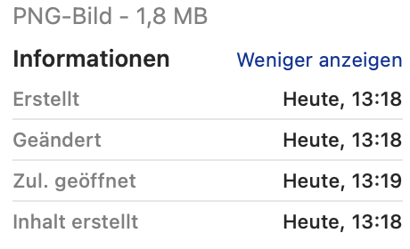Genauso mache ich es auch. Aber bei den meisten Fotos, die ich mit "Ablage > Exportieren > Unbearbeitete Original exportieren" herausschreiben lasse, exportiert Fotos eine Datei mit dem Erstellungsdatum und Änderungsdatum, das vom Aufnahmedatum abweicht. Das ist auf meinen Macs seit macOS 10.15 Catalina so. Nochmal ein Versuch, das Originalbild zu exportieren: