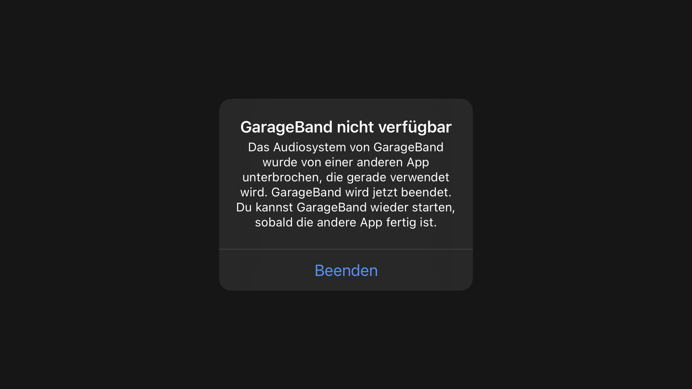 in der Fehlermeldung steht beschrieben, dass GarageBand durch eine andere App aktuell nicht verfügbar ist.