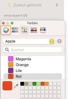 das Control für die Schrift-Farben in der Mac-App Notizen