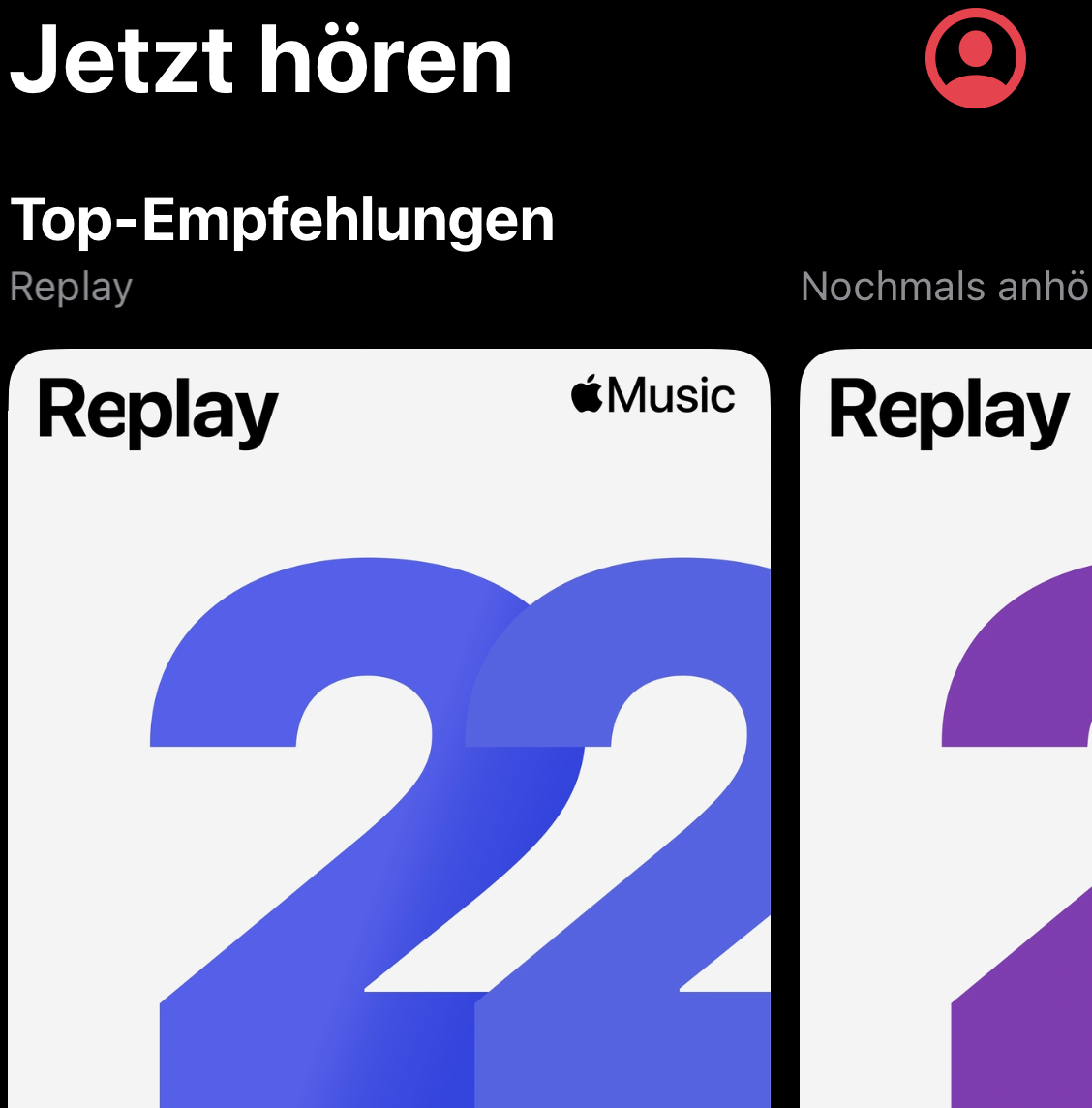 Aber eventuell kann dir folgender Tipp helfen. Ich habe entdeckt das in der Apple Music App unten bei dem Button Jetzt hören bei Top-Empfehlungen oben, die Playlisten Replay gibt. Es kann sein das sogar mehrere Playlisten verfügbar sind. Als Coverbild siehst du immer sehr präsent eine große Jahreszahl (siehe Screenshot).