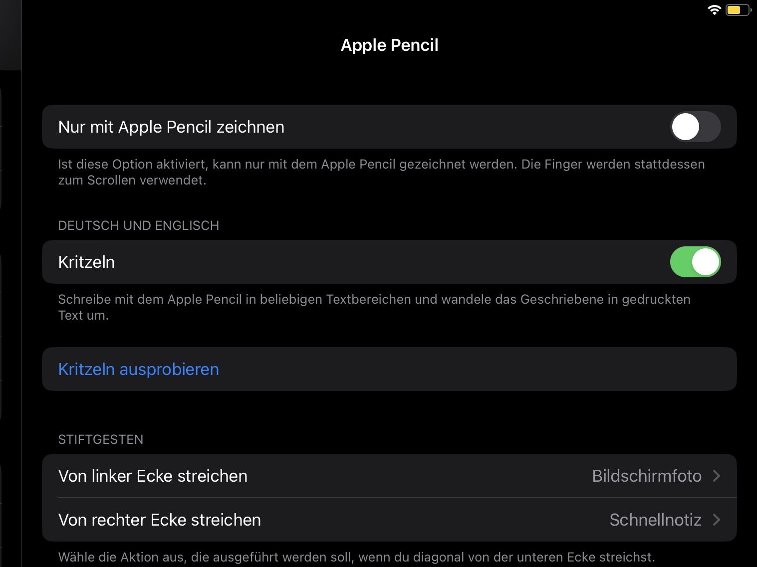 Dort kannst Du rechts unter Kritzeln (de)aktivieren, ob Geschriebenes umgewandelt wird oder nicht.