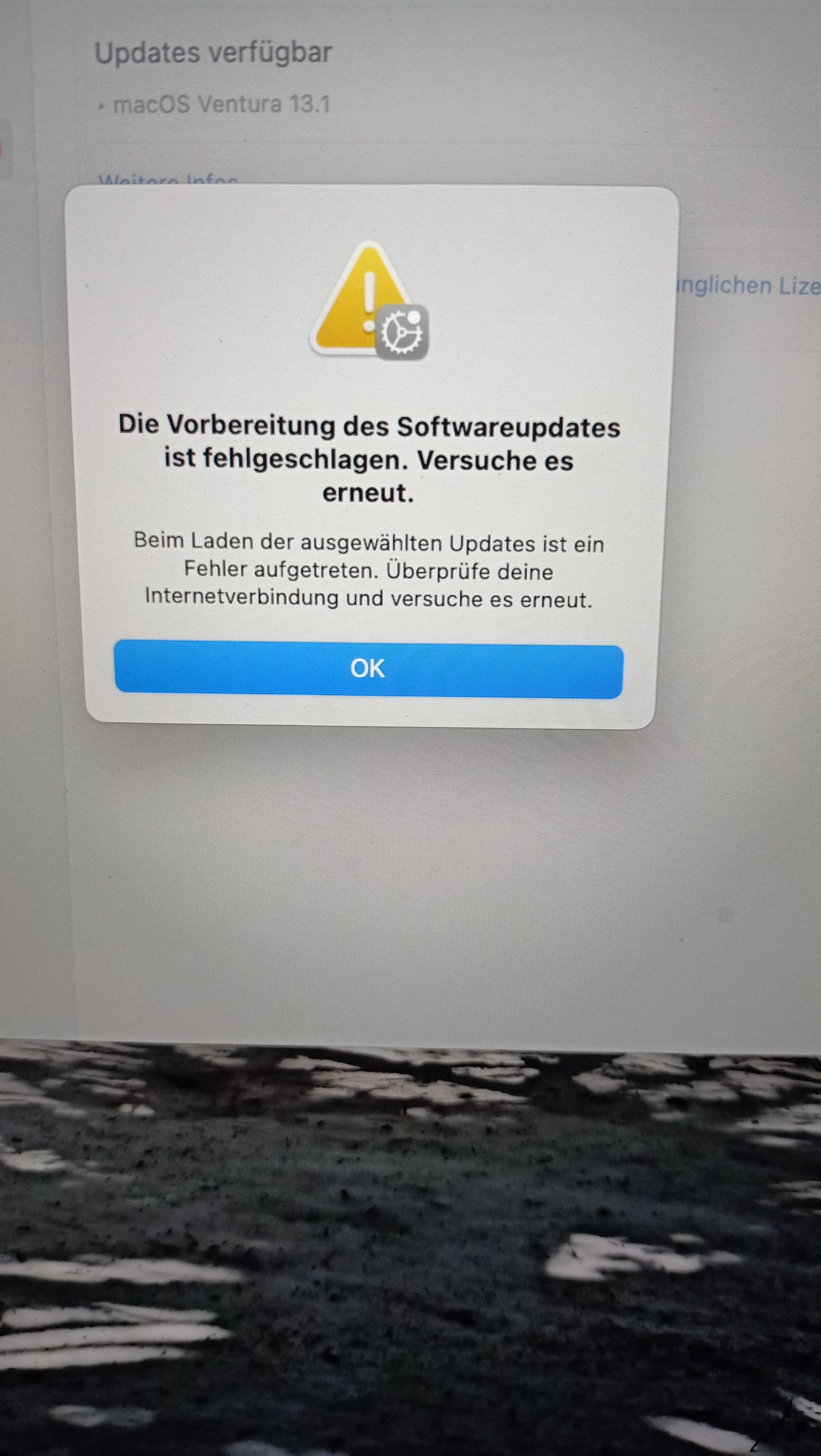 MacBook Air (M2, 2022); Ventura 13.0.1 installiert. Update auf Ventura 13.1 bricht immer wieder ab