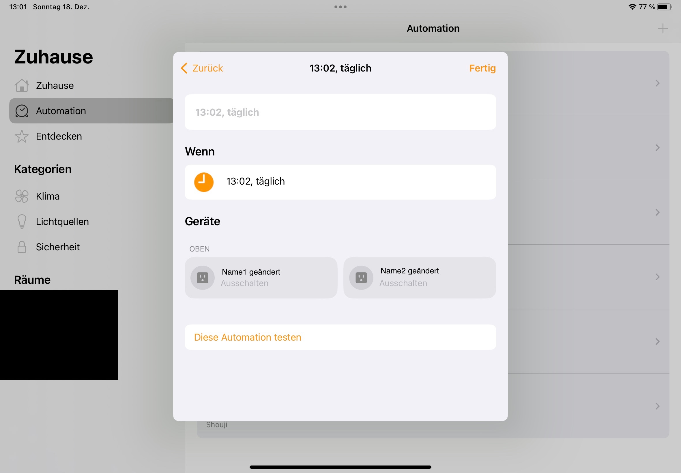 Zeitgesteuerte Automation funktioniert nicht mit 2 Geräten