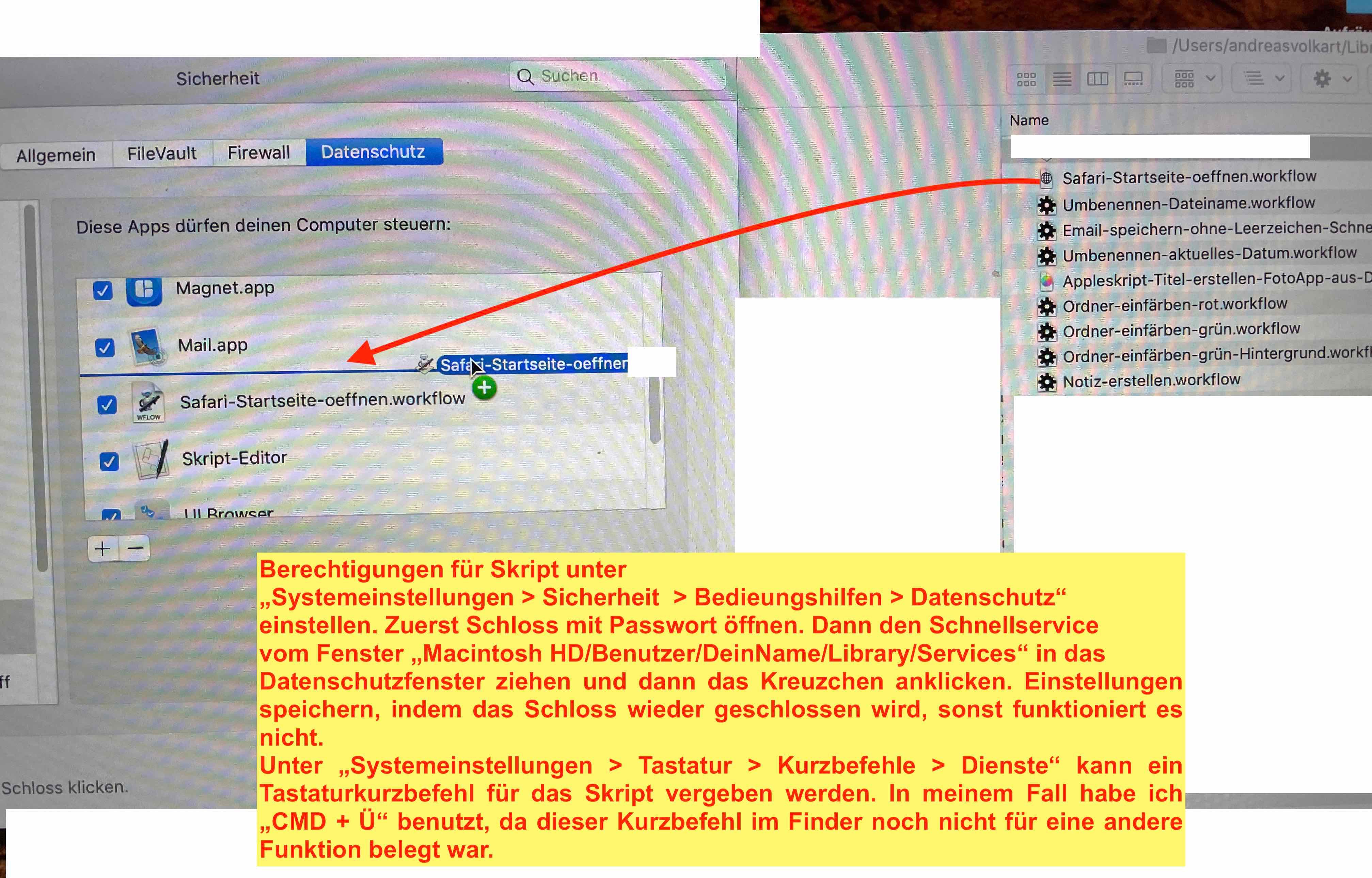 Damit Du das Skript per eigener Tastenkombination aufrufen kannst, musst Du in den Systemeinstellungen noch eine Tastenkombination vergeben. Ist am Anfang etwas kompliziert, aber auf diese Art lassen sich alle Probleme lösen.