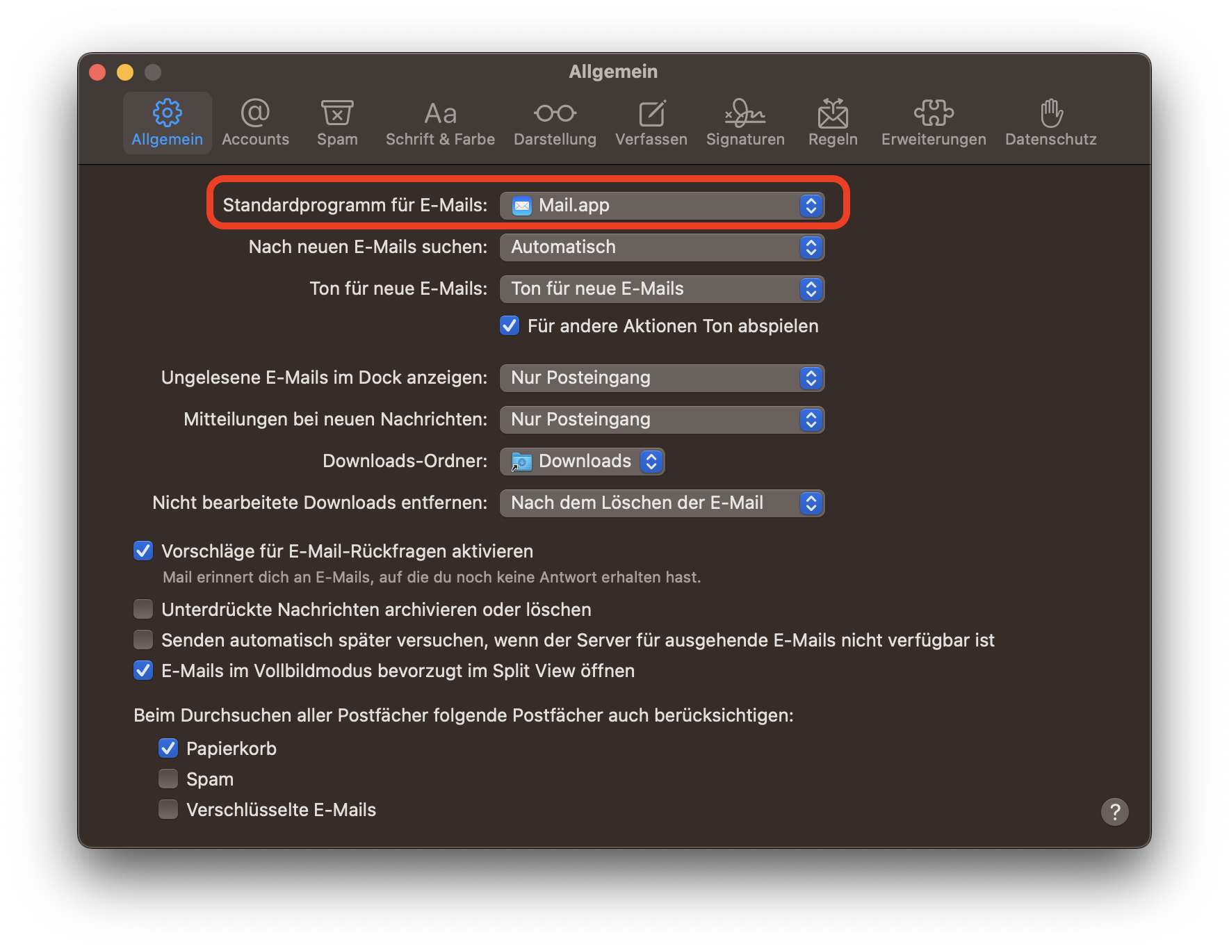 Hallo, ich konnte bisher immer ein Ereignis aus dem Kalender per Mail senden. Dann wurde der Kalendereintrag + .ics Datei in eine neue Mail übertragen. Seit ein paar Tagen öffnet sich leider Outlook statt des Apple Mail Programms. Wo kann ich einstellen, mit welchen Mail Programm das Ereignis verschickt werden soll? Ich finde leider nichts.