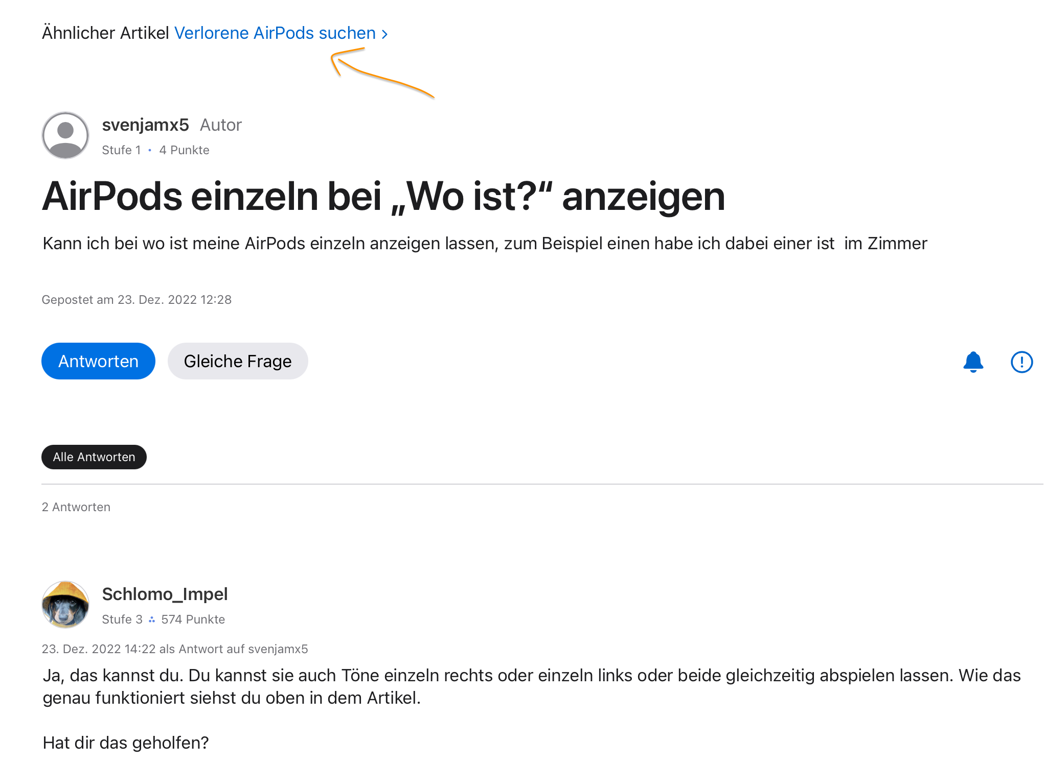 AirPods einzeln bei „Wo ist?“ anzeigen