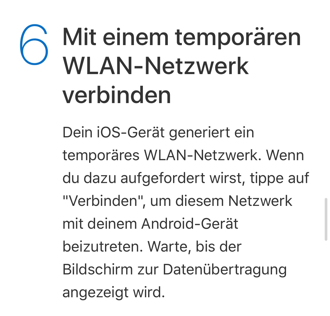 Noch nie ein iPhone draußen auf der Wiese eingerichtet, aber zum Daten übertragen von Android auf iPhone ist der Ort ja auch nicht von Belangen, dass iPhone baut ein WLAN Netzwerk auch im Keller auf. 😅