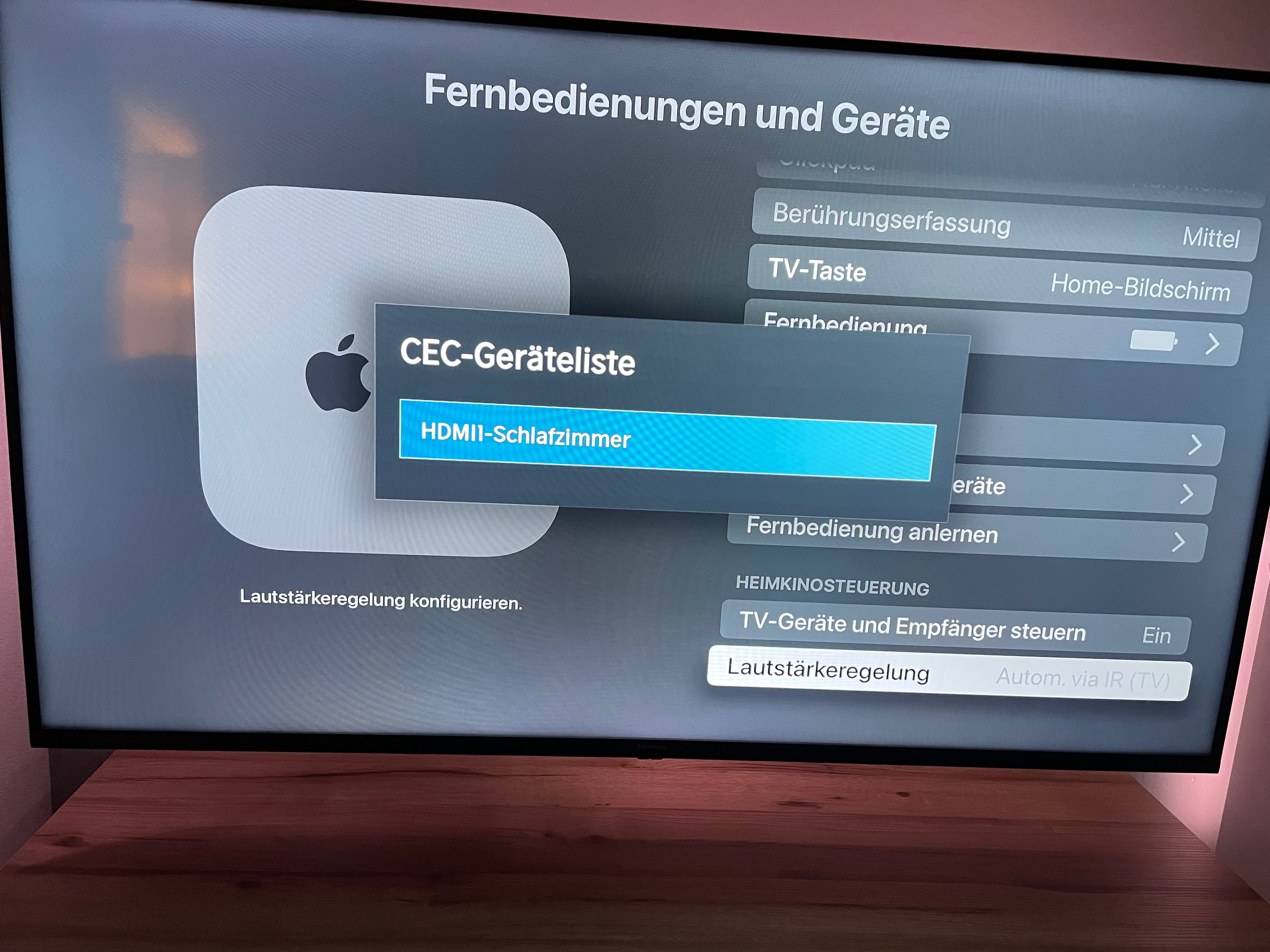 In den AppleTV Einstellungen wird mir bei Lautstärkeregelung auch nichts von HDMI angezeigt, nur Infrarot.