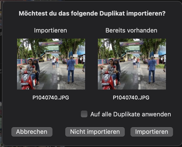 Leider kann ich mit dieser Fehlermeldung nichts anfangen. Die Fotos stammen von einer Fotokamera, können daher keinesfalls ein Duplikat sein. Denn das würde bedeuten, dass es das selbe Foto bereits in der Mediathek gibt. Dem ist nicht so.