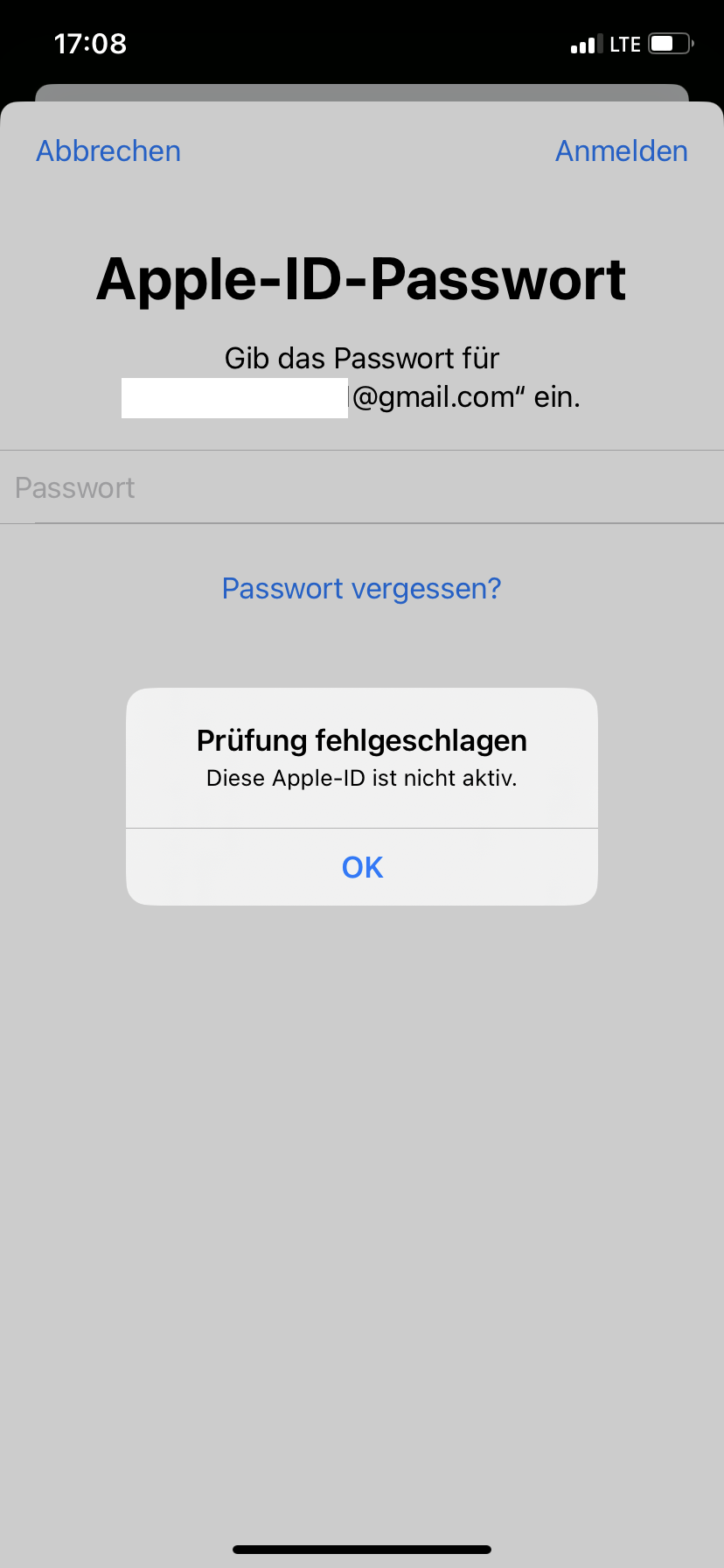 Ich bekomme eine Fehlermeldung, dass meine Apple ID nicht aktiv ist, obwohl diese definitiv korrekt ist und das Passwort ebenso richtig eingetippt wird. Was könnte die Ursache dafür sein und wie kann ich das Problem beheben?