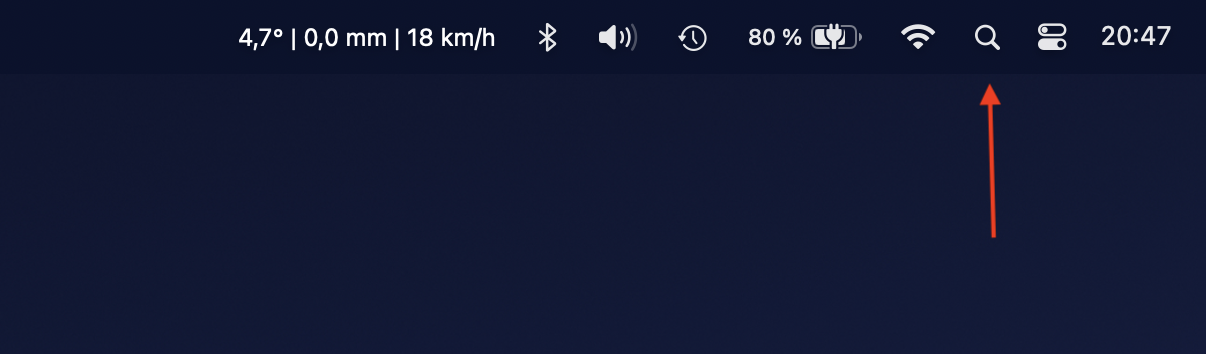 Hallo 17ques54, meine Spotlight-Suchfunktion habe ich rechts oben in der Menüleiste meines Mac hinzugefügt. Vorgegangen bin ich so.