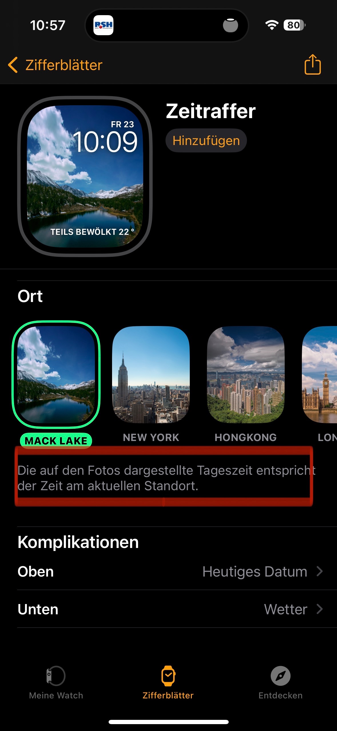 nach dem letzten Update meiner iWatch (Serie 6, watchOS 9.2) habe ich das Problem dass das Zeitraffer Zifferblatt anscheinend sich nach der US-Westküste verändert (also tagsüber dunkel und abends hell).