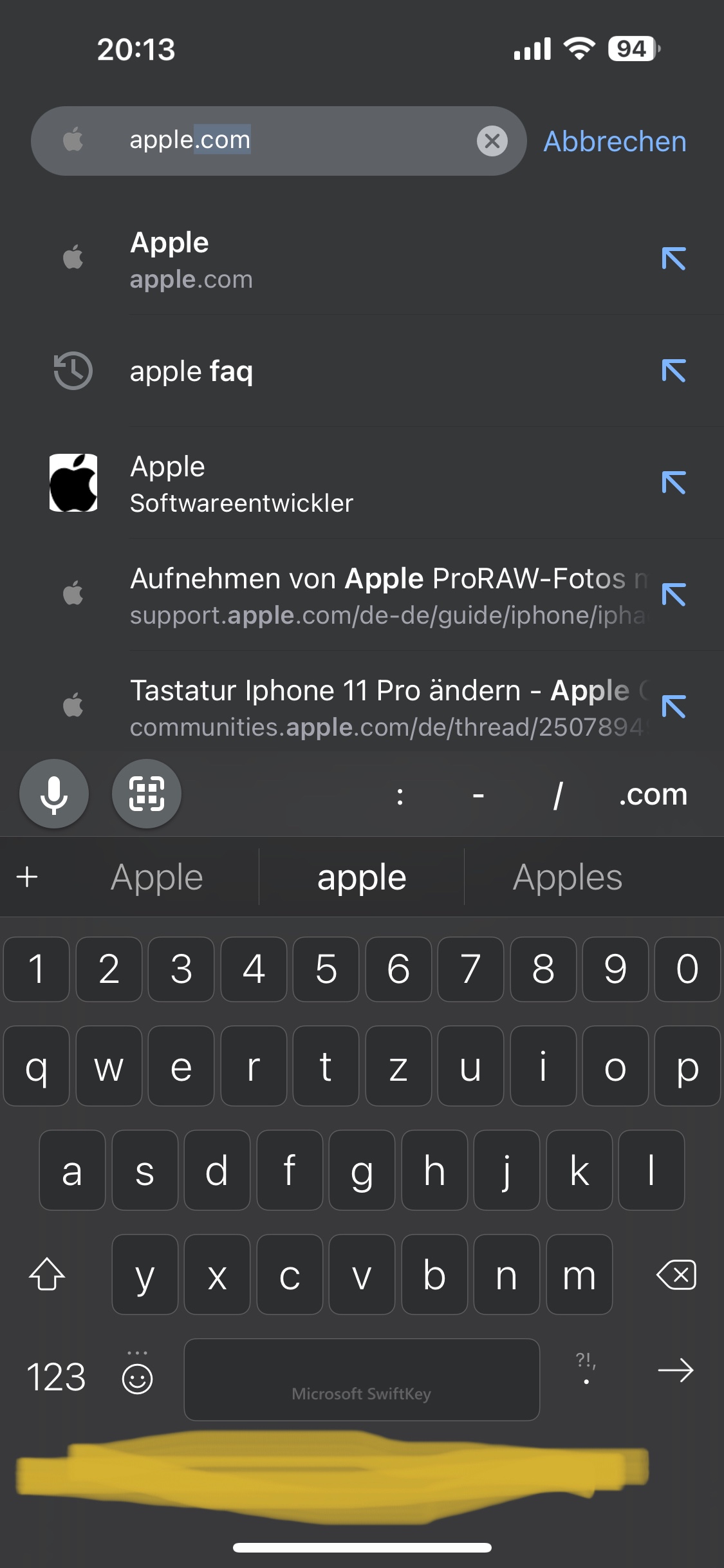 Im Gegensatz zu Android spielen Dritttastaturen bei iOS eine nachgeordnete Rolle. Bei der Originaltastatur habe ich in diesem Bereich den Umschalter für die Tastatursprache / Emojis, und die Diktierfunktion.