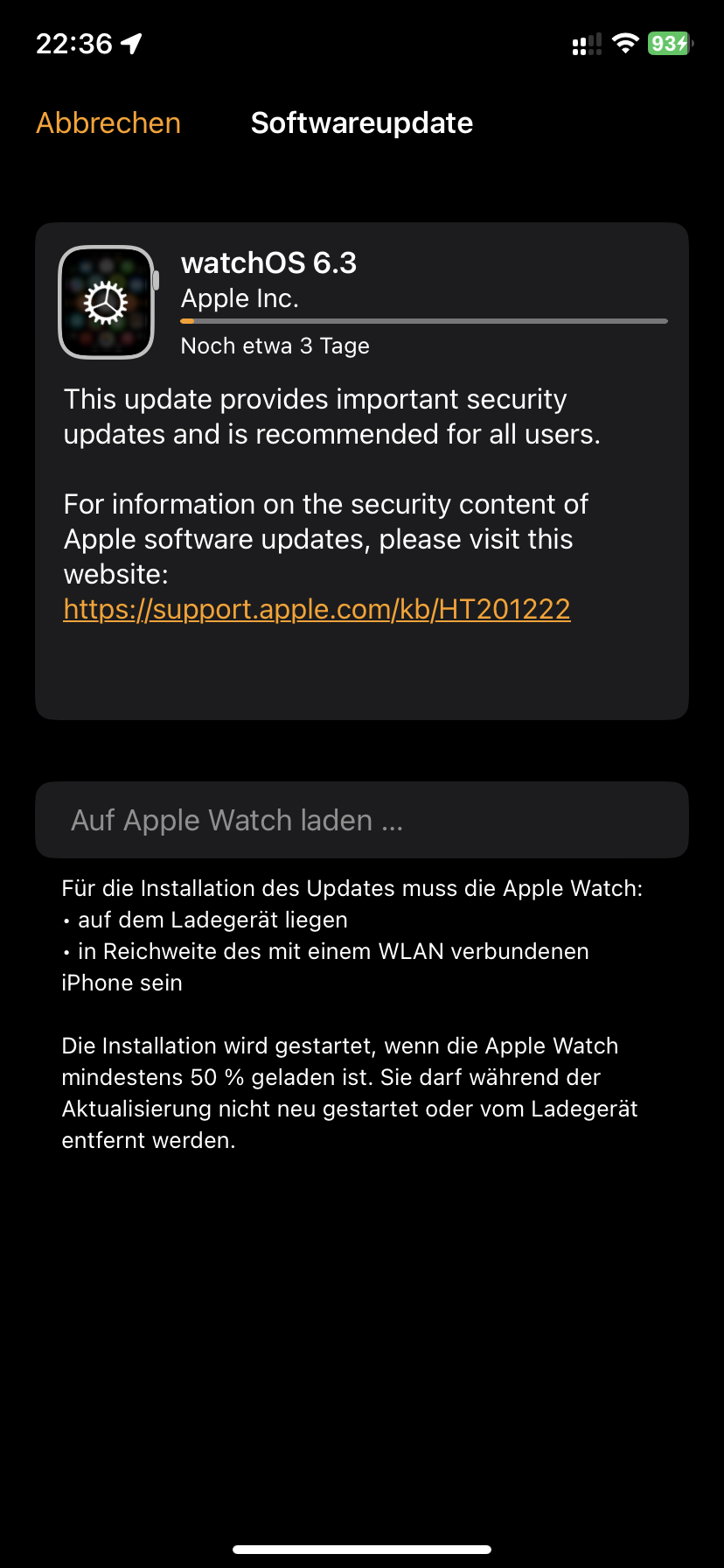 Apple Watch Gen. 2 Update auf watchOS 6.3 dauert zu lange